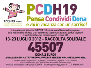 Dal 13 al 23 luglio l’associazione ha ottenuto un numero solidale 45507 per l’attuazione di una campagna di raccolta fondi. Nel contesto di tale campagna saremo anche presenti in RAI su varie trasmissioni nella settimana dal 16 al 22 luglio